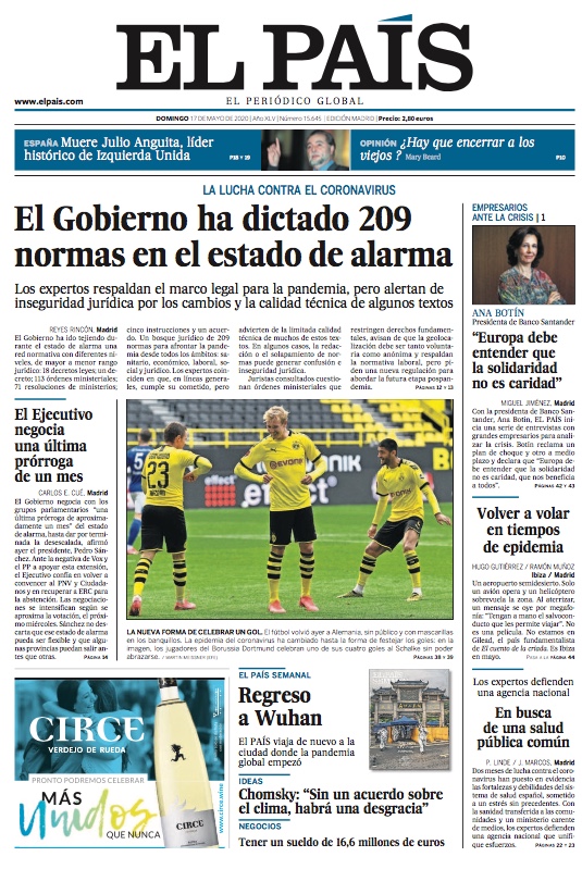 Confira as capas dos jornais do mundo deste domingo, 17 de maio de 2020.